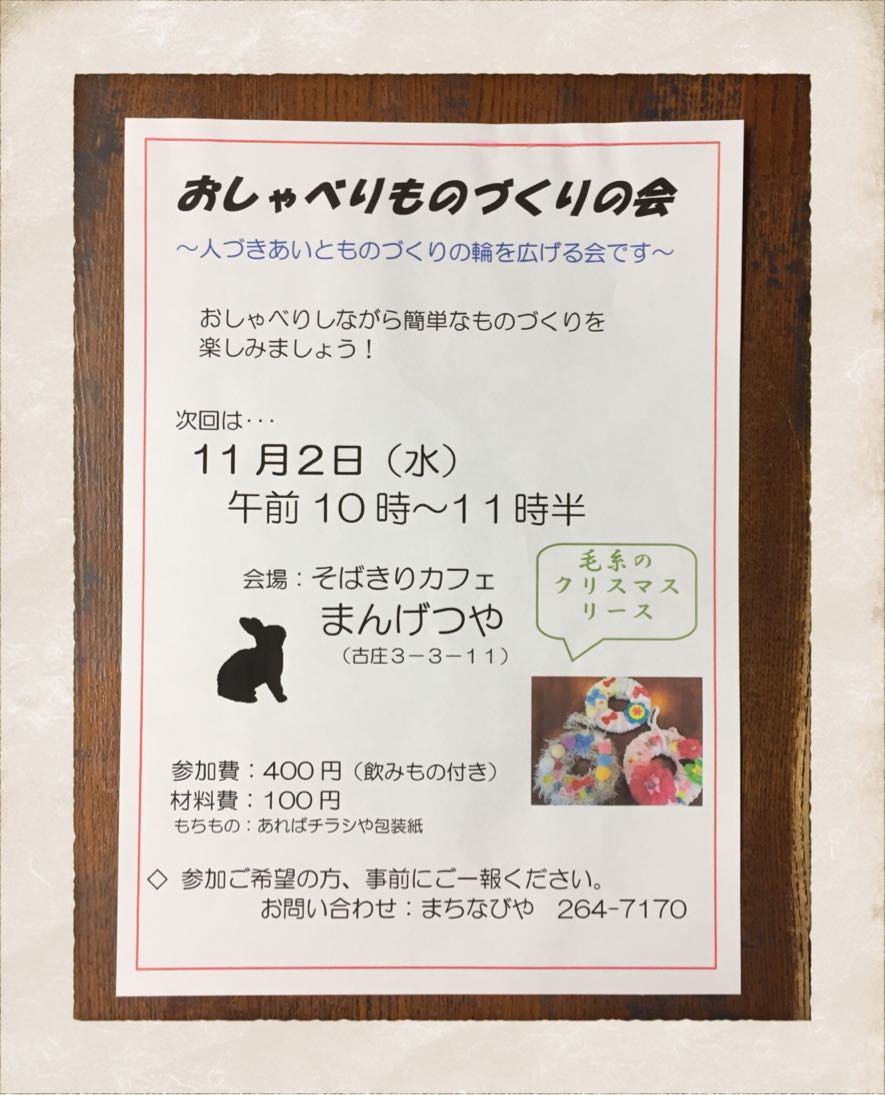 (蕎麦屋の開店は11:00ですが、ものづくりの会は10時に始まります)