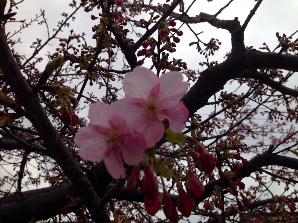 なんと早咲きの桜もしおらしく。。。