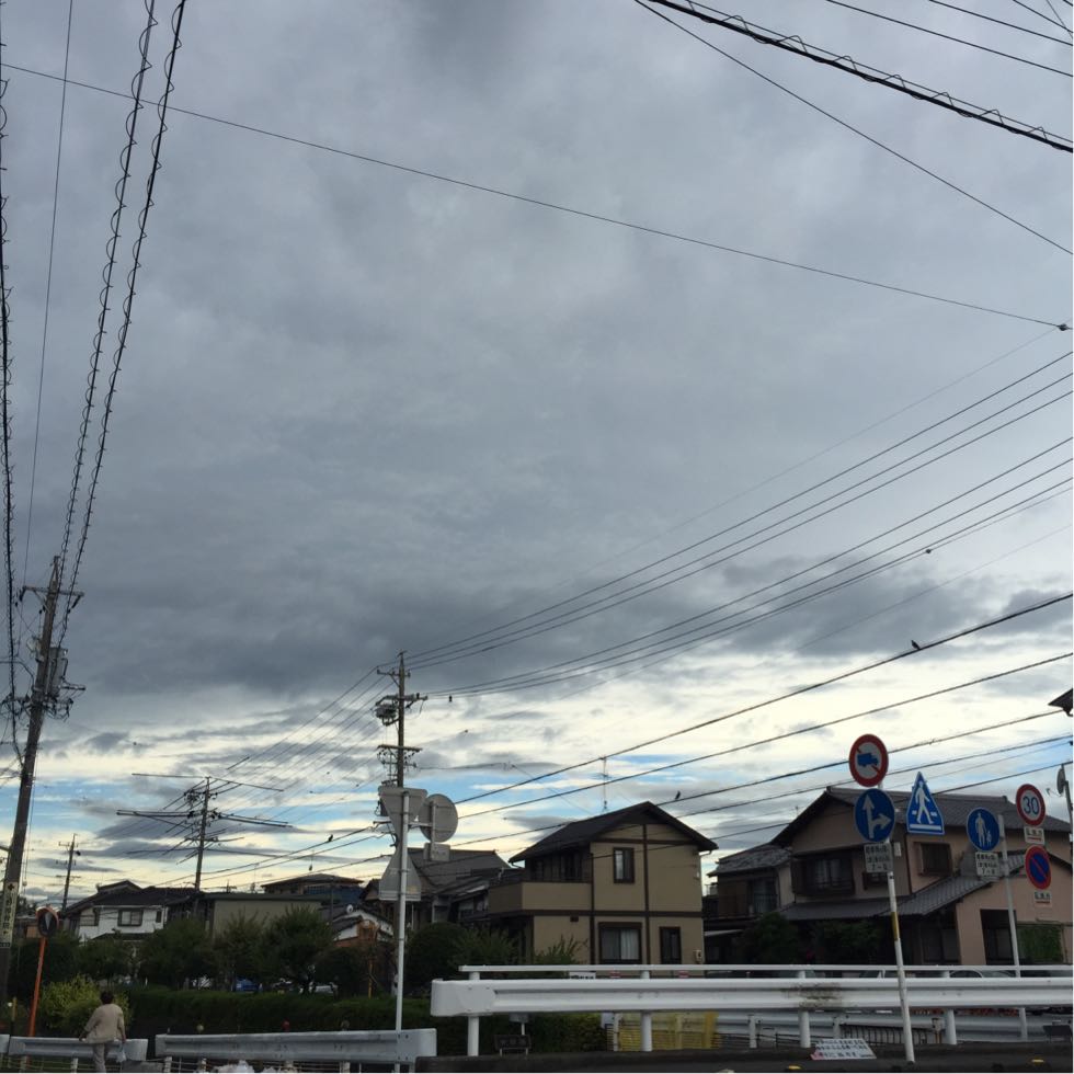 今朝の空は、晴れる前の微妙な曇り空。合間から少しだけ見える青空が綺麗でした。