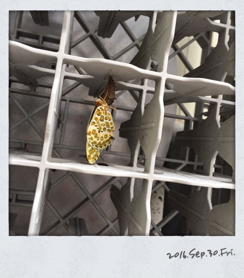 店の裏手で、蝶々が羽化。