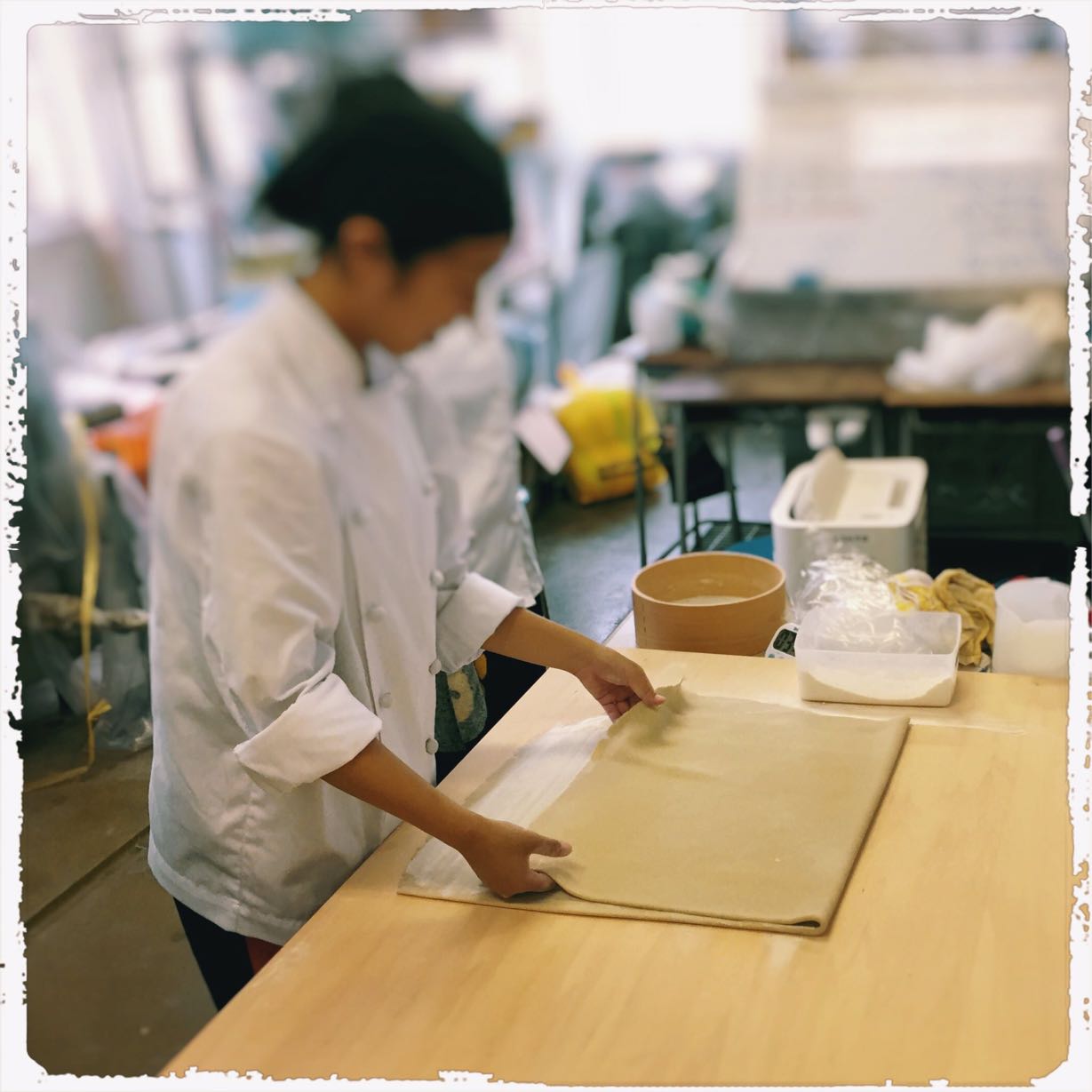 高校生のそば打ち練習