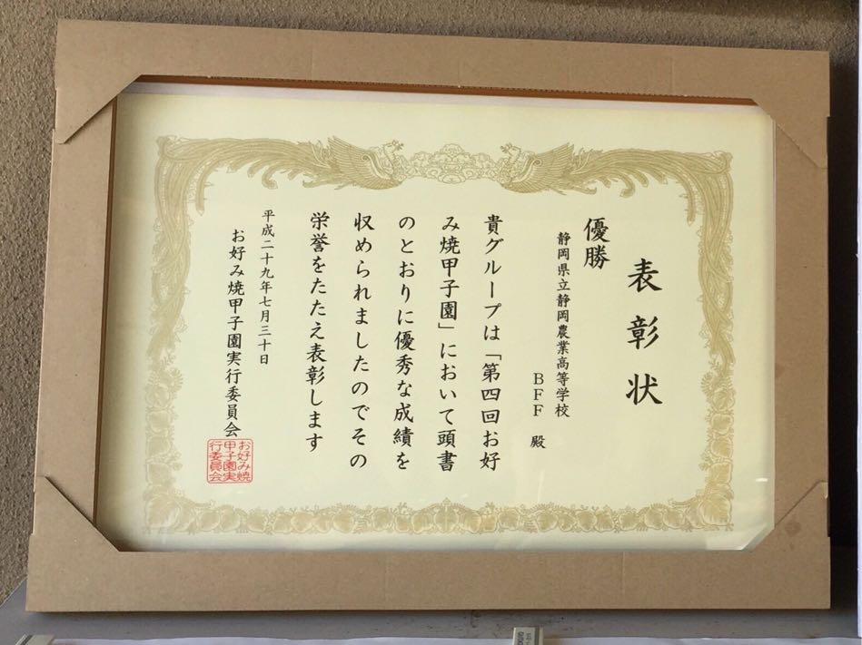 いつもお世話になっている、静岡農業高校のチームが「お好み焼き甲子園」で優勝!
