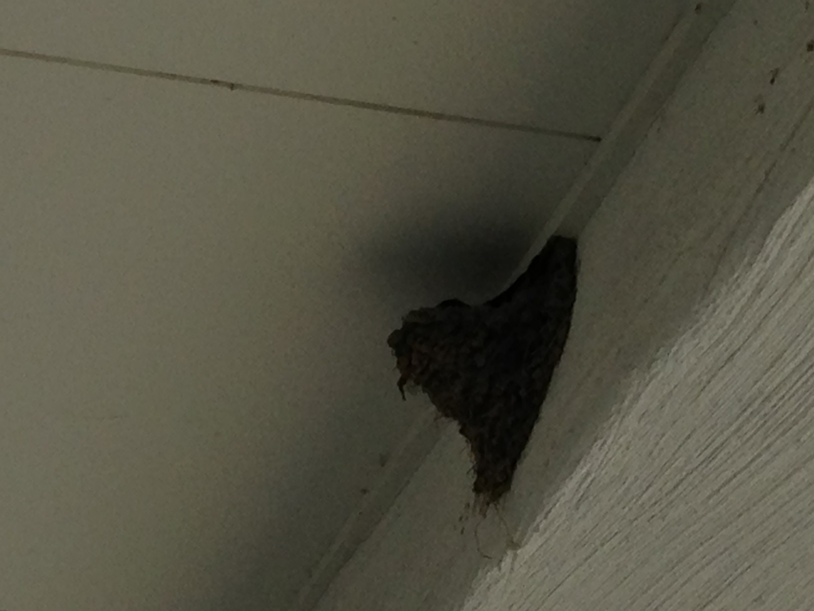 今さっき、ツバメの巣が卵ごと落下。