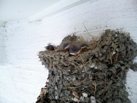 親つばめがいない間に、主人がはしごを使って写真を撮りました。